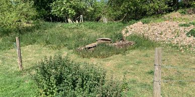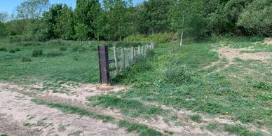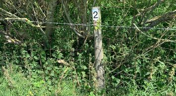 Access is through the gap in the barbed wire fence. The peg numbers are in the background of this photo.