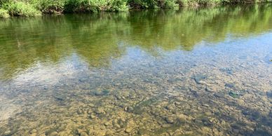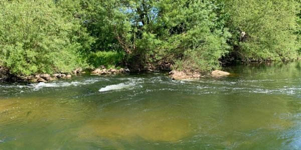 A beautiful section of water with riffles, deeps, slacks and lots of structure provided by an old, collapsed bridge in the river.