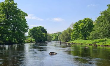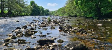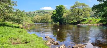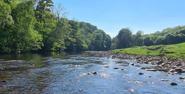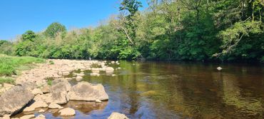 You can drive further up the road from the bridge and park in the lay-by on left hand side just before the road bends to the right. Walk from the lay-by towards the bend in the road. Go through the gate on the left to access the river. This photo is taken looking back towards the bridge.