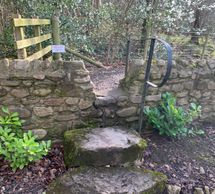 If you are parked at Easby, then enter by this style adjacent to "Love Lane House" (also known as "The Platelayer's Cottage"), on the north bank next to Easby Bridge. It is marked as private access (for anglers only). Follow the path about 30 yards until you get to the gate